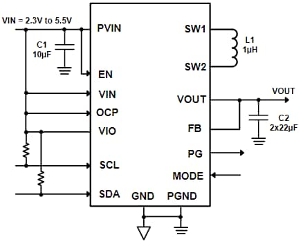 Diodes Incorporated AP7220x DC-DCバック・コンバータは、大電流降圧コンバータで、高い効率性、優れた過渡応答、高DC出力精度を実現しています。このバックブースト・コンバータには、4スイッチHブリッジ構成が備わっており、2Aの連続出力電流でバックおよびブースト動作をサポートしています。これらのコンバータには、双方向シリアルデータ・ライン、SDA、最大3.4MHzのSCLクロックレートをサポートしている2線式シリアル・インターフェイスが統合されています。このバックブースト・コンバータは、2.5MHzスイッチング周波数、I2Cからプログラミングできる超音波動作、調整可能な過電流制限が特徴です。これらのコンバータは、20ボールWLCSPパッケージでご用意があり、2.125mm x 1.750mm寸法になっています。一般的なアプリケーションには、スマートフォン、タブレット、ポータブル・コンシューマ・デバイスがあります。特徴